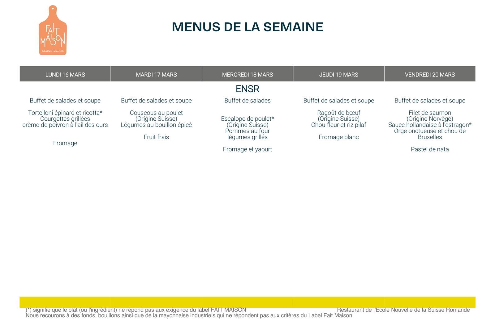 The Ecole Nouvelle has officially been awarded the ‘Homemade’ label. This label certifies that our dishes are cooked by our chefs on site using fresh Swiss produce. Hours of cutting, simmering, expertise and passion in the kitchen result in flavourful dishes and desserts. This is recognition of our commitment to artisanal, high-quality cuisine that respects ingredients and seasons.